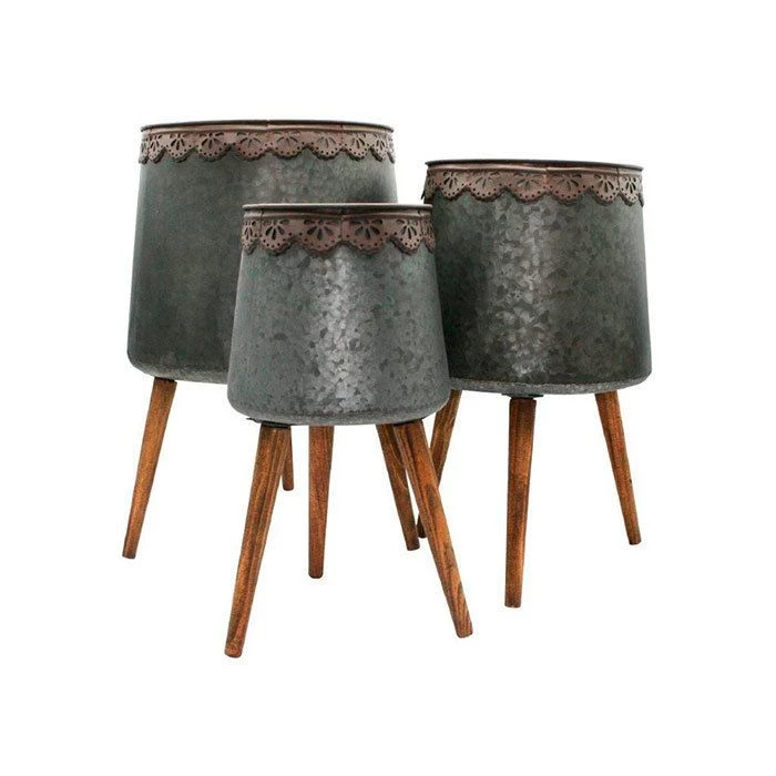 Produkt Name Metall 40 Topf mit Holzfüßen S3 Ø20,27,35cm natur