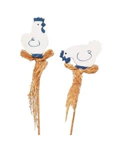 Keramik 40 Loch Hahn blau weiss H12,5cm